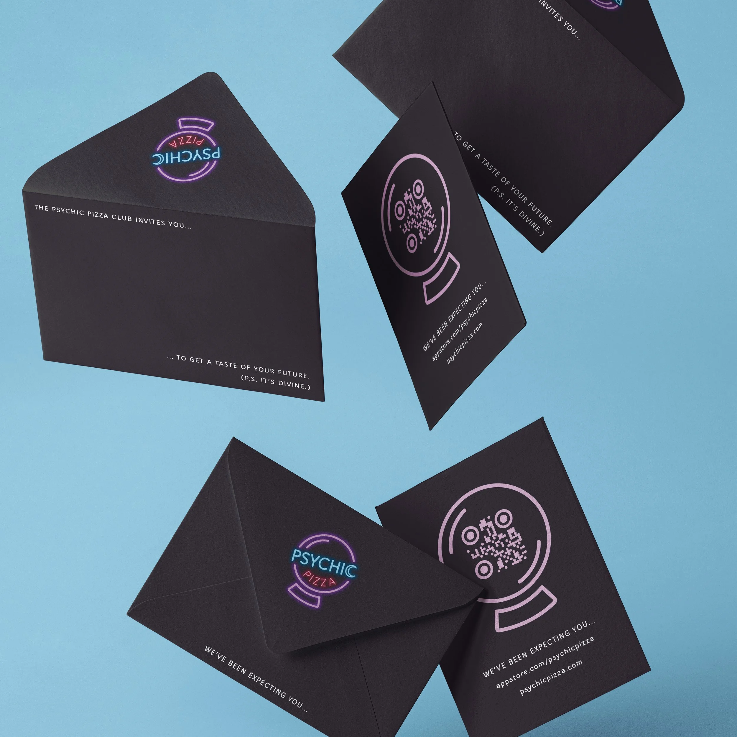 Aimed towards a younger customer base that can be reached through digital media and be more inclined to use delivery apps, the brand merges mystical, psychic themes with the classic pizzeria experience. With illustrative and copy-writing elements referencing the supernatural, Psychic Pizza is concept-driven, inviting app users to enter the mystical lair of a psychic and “consult the cards” to choose their meal.