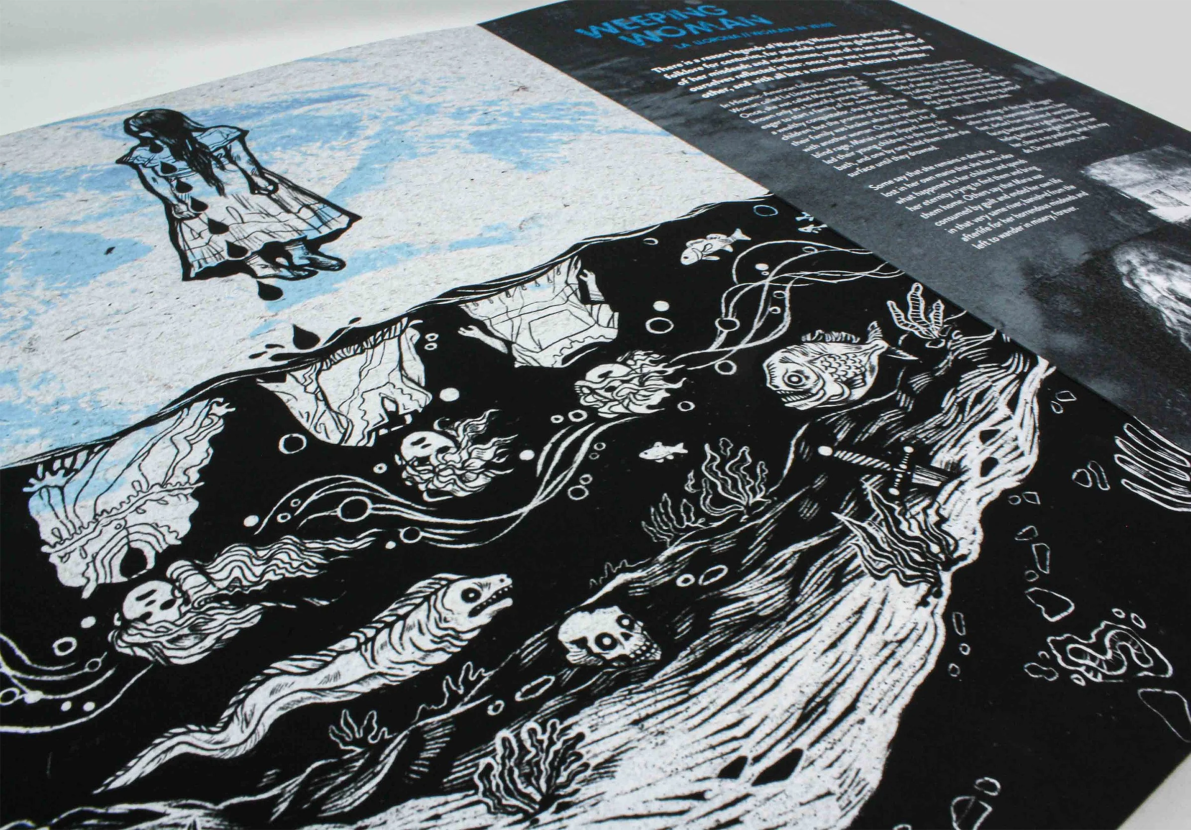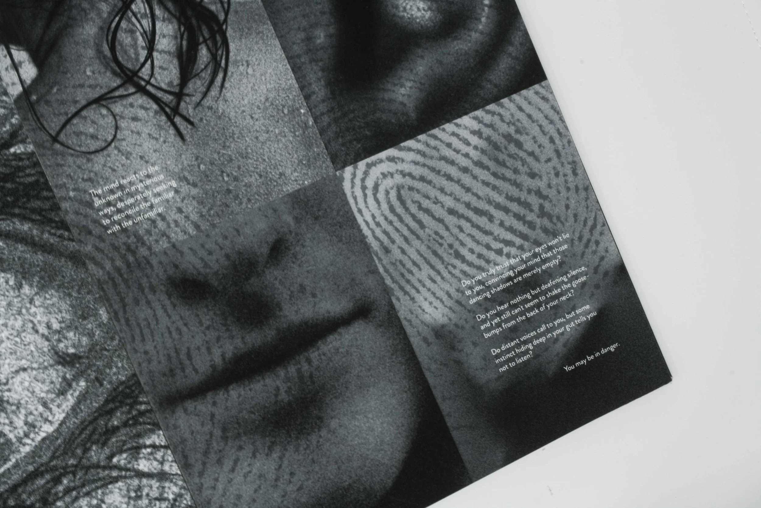 With so many layers of texture, photography, illustration, and physical interactivity, the design process relied on experimentation. My illustrations for each featured chapter were influenced by the idea of tradition, drawn to look like woodcut prints. This translated to decisions in typography, where I drew inspiration from hand-made, wood block stamps and horror’s gimmicky scratchy scrawl to give the book a sense of timelessness.