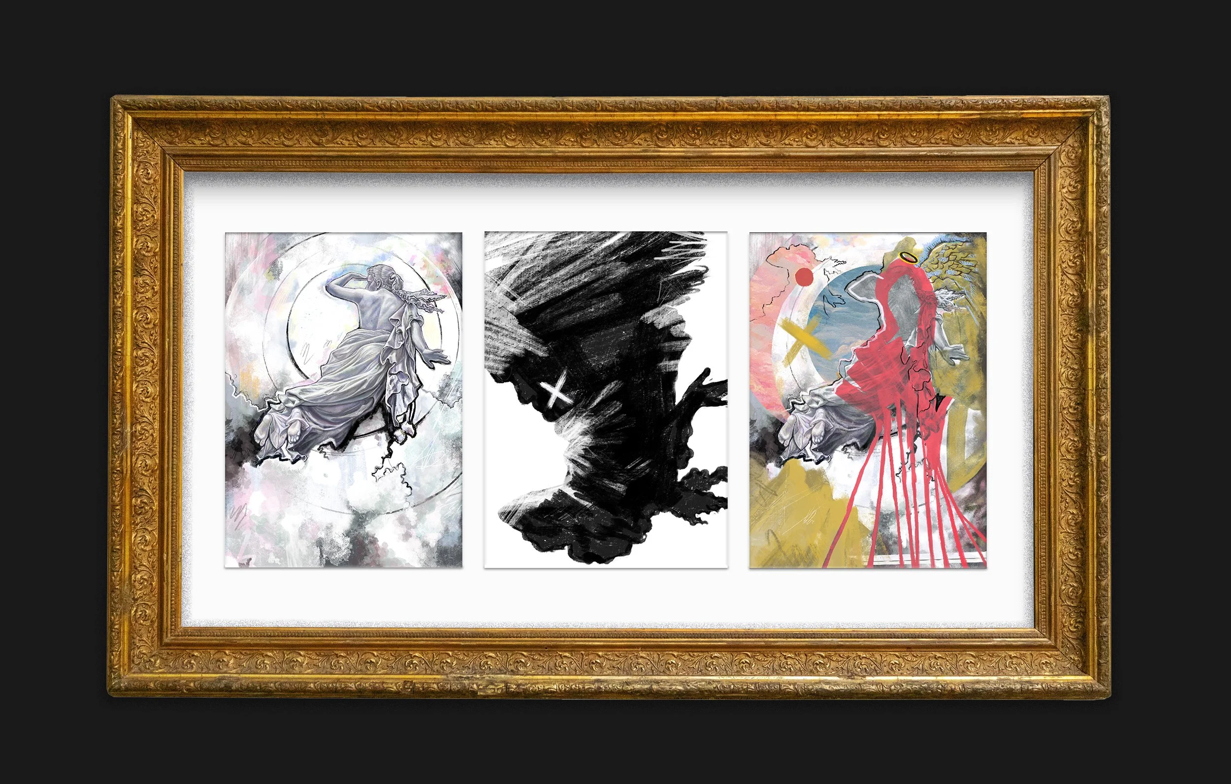 The songwriting is a story in and of itself, and I interpret the lyrics to be narrating a fighting desire and a pull towards freedom. Throughout the song, we experience the tumultuous ups, downs, successes, and failures of someone giving into their desire to discover themselves. The illustrations follow the same figure – a still-life digital painting based on “The Lost Pleiad” (1874), a marble sculpture by Randolph Rogers – as it progresses through these stages.